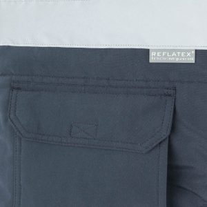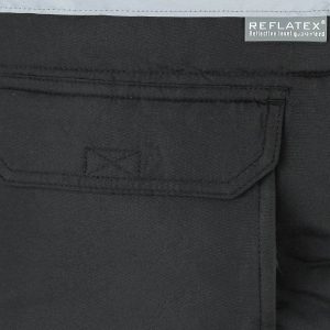 1 bolsillo de fuelle en el pecho con tapeta y velcro. Sobre él, compartimentos para bolígrafos y 1 bolsillo interior de parche
