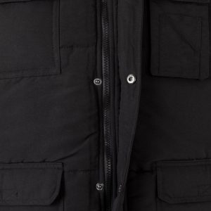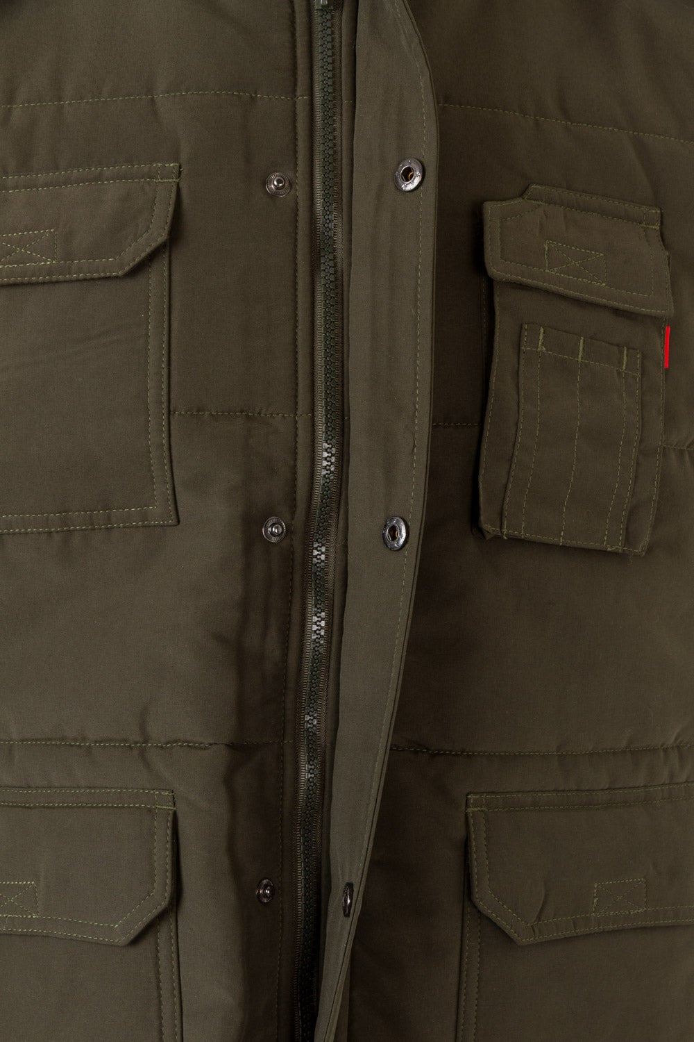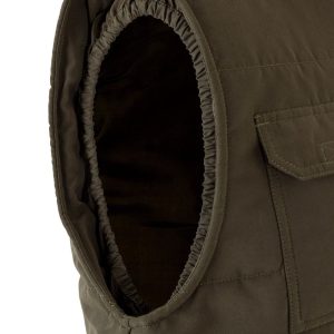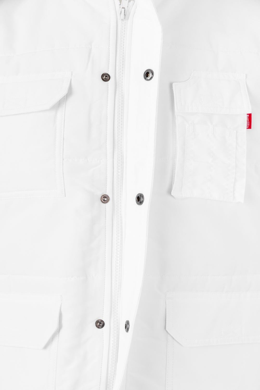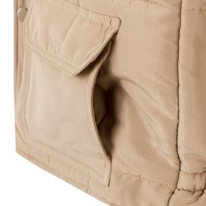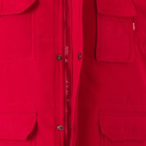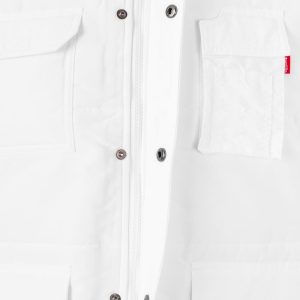 Siete bolsillos: 1 bolsillo de parche en el pecho con tapeta y velcro; 2 bolsillos inferiores de parche con tapeta y velcro. Debajo de cada uno, 2 bolsillos laterales; 1 bolsillo de fuelle en el pecho, con tapeta y velcro. Sobre él, compartimentos para bolígrafos y 1 bolsillo interior de parche