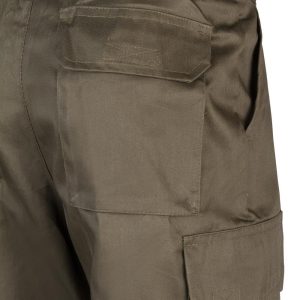 Seis bolsillos: 2 bolsillos franceses; 2 bolsillos de parche con fuelle central, tapeta y velcro y 2 bolsillos traseros de fuelle con tapeta y velcro