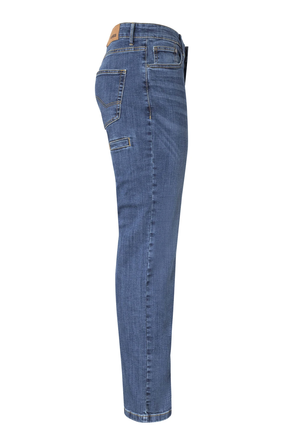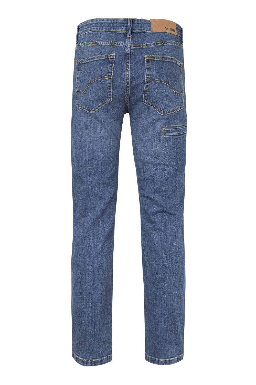 Siete bolsillos: 2 bolsillos delanteros; 1 bolsillo relojero; 2 bolsillos traseros de parche; 1 bolsillo de vivo para móvil o herramienta en el frontal de la pierna izquierda y 1 bolsillo de vivo para móvil o herramienta en el trasero de la pierna derecha
