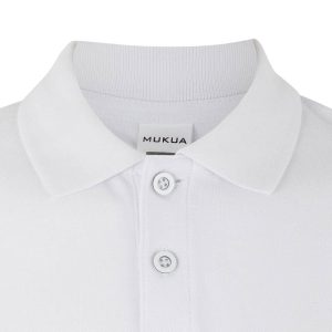 Polo NIÑO manga corta. Punto piqué. 100% algodón RingSpun pre-encogido. 210 g/m² Tapeta de 2 botones Cubrecosturas reforzado en el interior del cuello para evitar deformación Canalé 1×1 en cuello y mangas con elastano Costuras laterales con aberturas inferiores Tallaje unisex: MACKAY Tallaje de mujer: MACKAY WOMAN