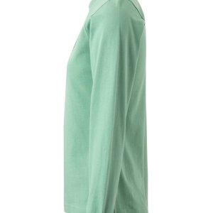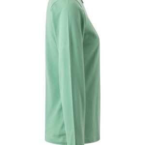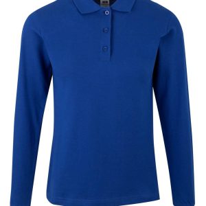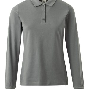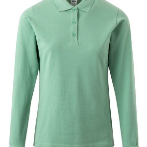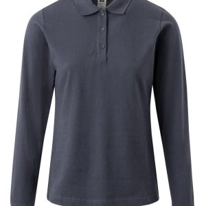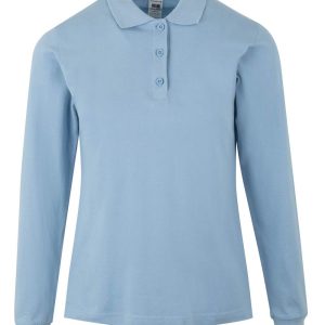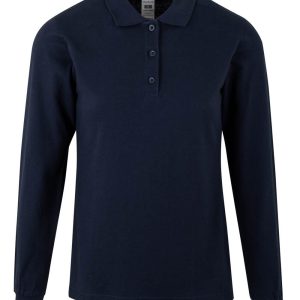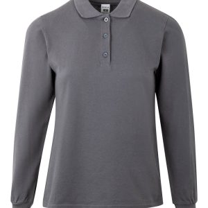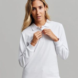 Polo MUJER manga larga. Punto piqué. 100% Algodón RingSpun preencogido. 210 g/m² Tapeta de 3 botones Cubrecosturas reforzado en el interior del cuello para evitar deformación Canalé 1×1 en cuello y mangas Puño con elastano para mayor elasticidad y evitar deformación Costuras laterales con aberturas inferiores Slim fit Tallaje unisex: HOBART