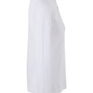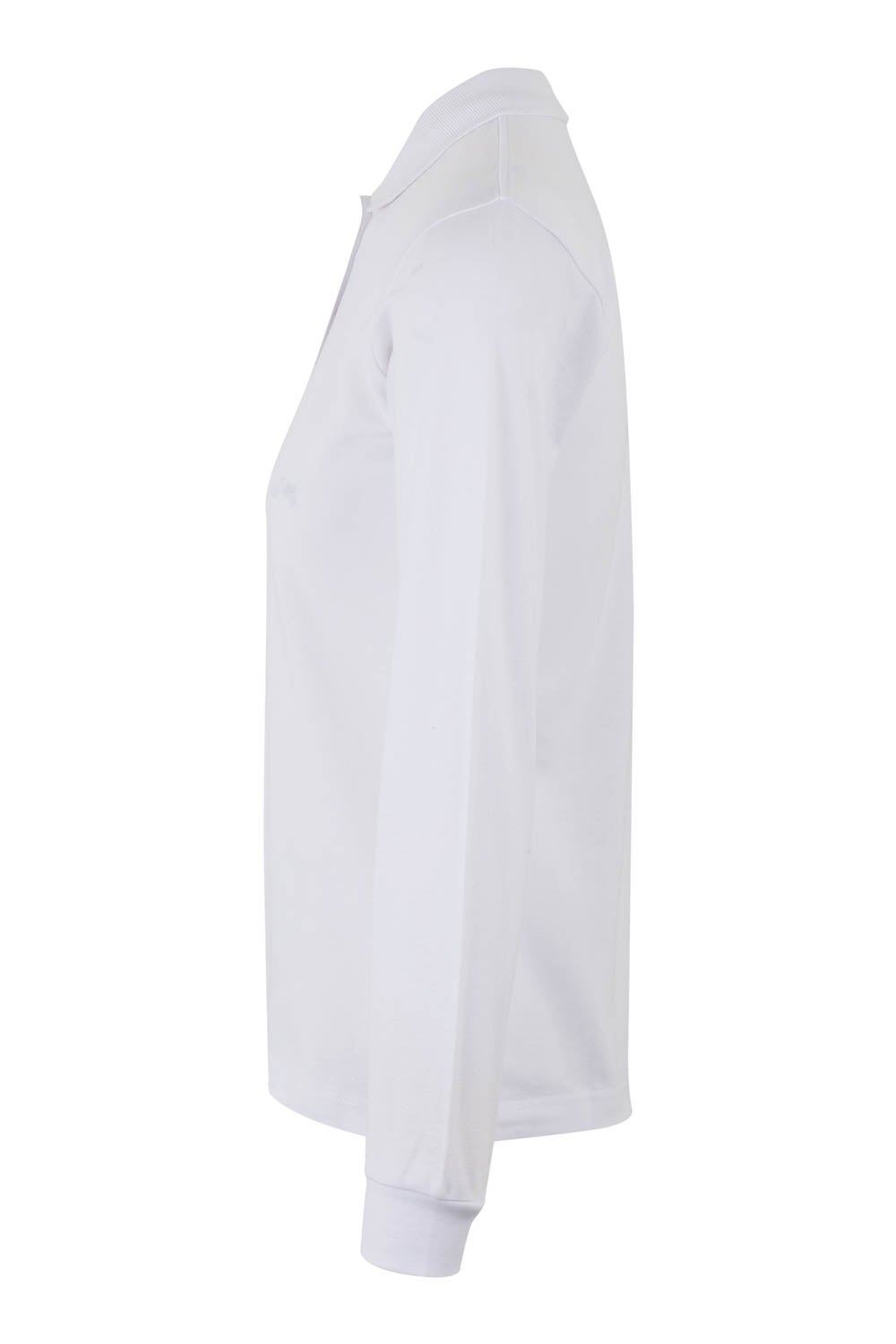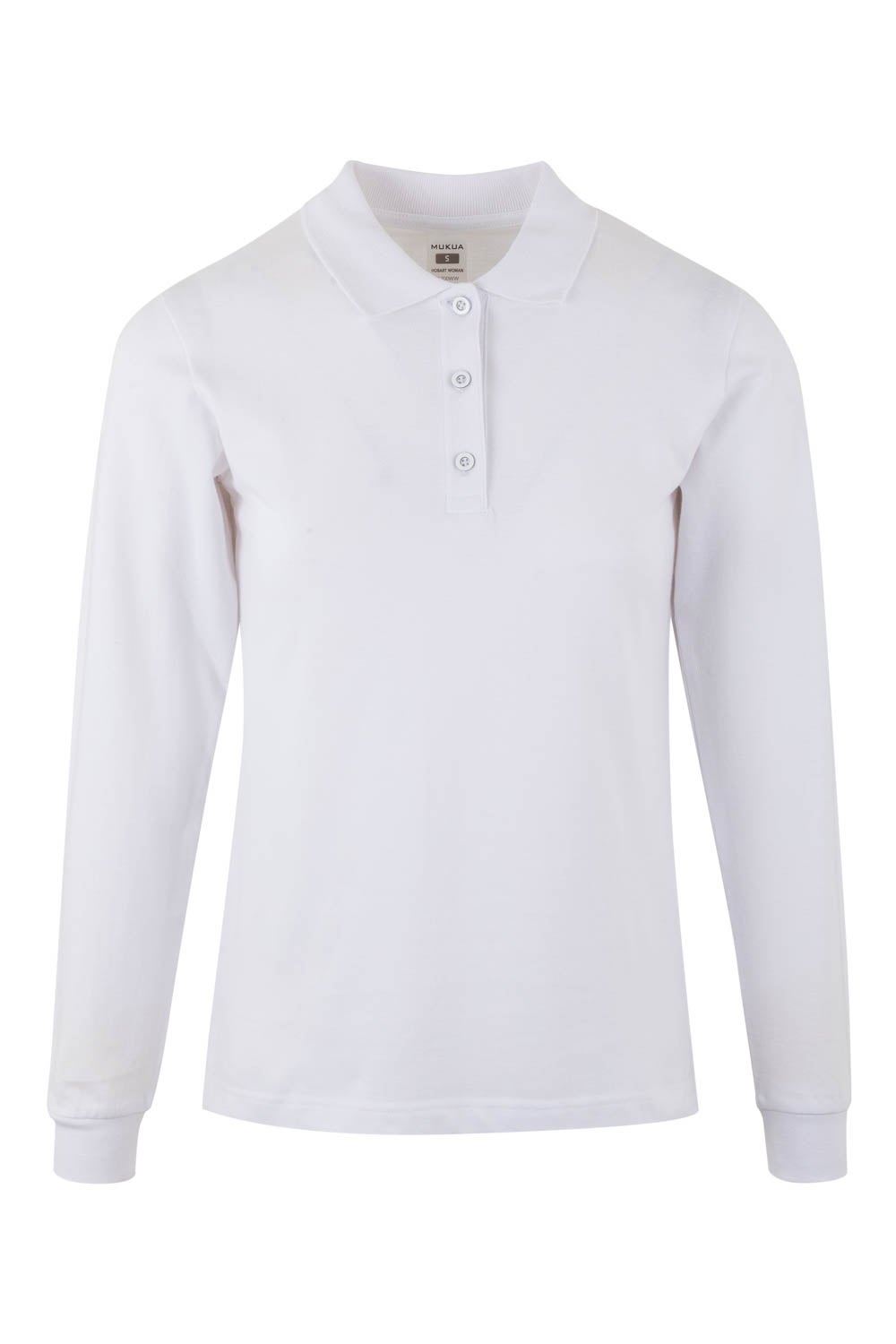 Polo MUJER manga larga. Punto piqué. 100% Algodón RingSpun preencogido. 210 g/m² Tapeta de 3 botones Cubrecosturas reforzado en el interior del cuello para evitar deformación Canalé 1×1 en cuello y mangas Puño con elastano para mayor elasticidad y evitar deformación Costuras laterales con aberturas inferiores Slim fit Tallaje unisex: HOBART